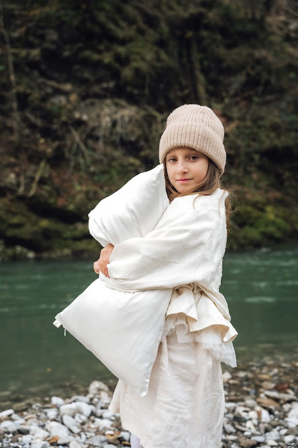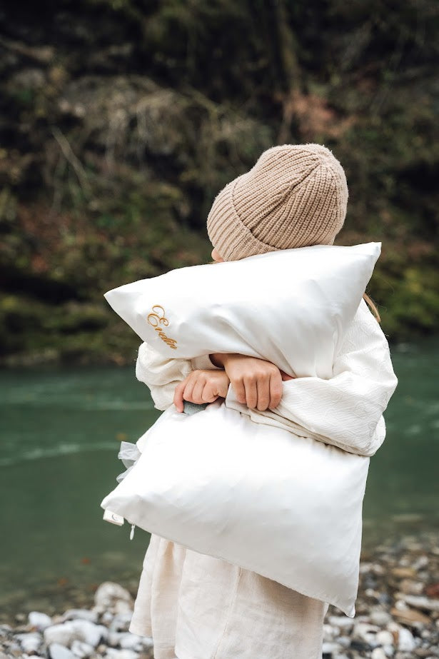 Odkrijte našo kolekcijo za najmlajše, ki z nežnostjo 100% Mulberry svile varuje in pomirja občutljivo otroško kožo.